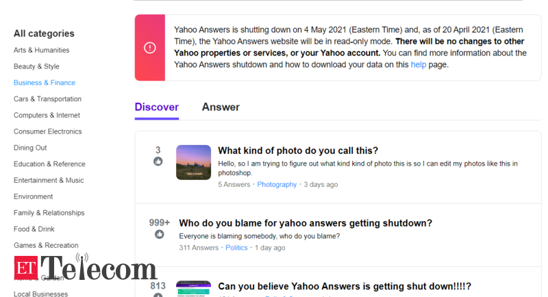 Yahoo Yahoo Answers Shutting Down On May 4 Telecom News Et Telecom